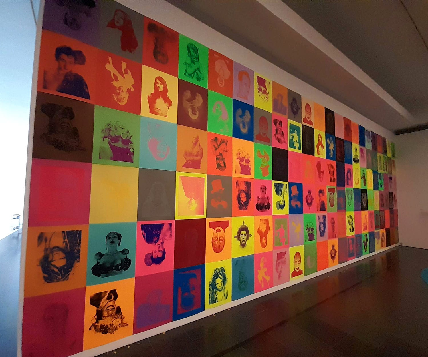 and the wall of portait “posters”, which seemed a jumble at first. On further examination I could see that there was much repetition and that many of the portraits were of trans people. Without a doubt, the colourful prints recalled Warhol yet held their own contemporary edge. I thought they celebrated individuality over sameness.